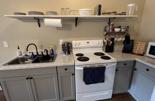 Unit A Built in 2022, A modern 2 bedroom/ 1 bath suite with fully furnished kitchen, living room, and dining room.. The bedrooms are furnished with queen bed, two twin beds, bedding and pillows. Kitchen is fully furnished including coffee pot, keruig, toaster, microwave, freezer/fridge, stove, pots/pans, plates, silverware and cleaning supplies. Unit has kitchen table with chairs, two couches, smart tv, office table with chair, outside bbq and patio tables/chairs. Apartment is just minutes away from the Cherokee National Forest, Parksville Lake, Ocoee River and much more. Enjoy whitewater rafting, fishing, boating, and hiking, right in your back door! We are located at the Whitewater RV Park at the base of the Ocoee River. Coin laundry is available at the office. No pets.