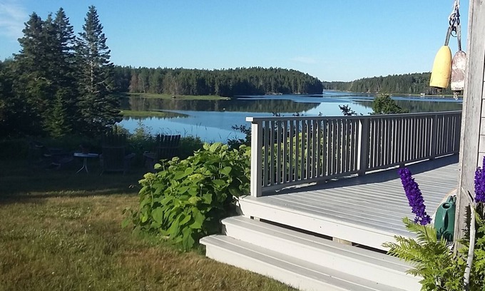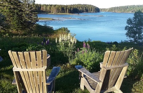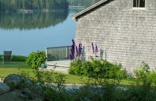 Wonderful getaway! An enchanted seaside classic with expansive views straight down secluded Crockett Cove. Sun filled, sedate, romantic and beautifully appointed. Astounding views of the huge rolling wild flower filled central meadow of Cove Meadow. Owner Managed with an eye to detail, and a view to your comfort and enjoyment of all that is here to experience. Sited on 7 magical acres of mostly open meadow surrounded by stands of ancient trees and moss carpeted forest with one 1/4 mile of private shore, the cottage has its own exclusive two acres and 300 feet of shorefront.(It is the guest cottage to the main house but quite independent with no shared facilities or space. Own Organic kitchen garden and own exclusive firepit. Excusive free access to two small kayaks and one canoe. On site launch for your small boat. A serene and peaceful retreat for contemplation, or a special occasion ..a favorite of writers, artists, photographers, naturalists, experienced wilderness paddlers, fishermen and amateur astronomers. Kayak launch site on property affords experienced ocean kayakers a wonderful daily departure for exploring the many nearby islands of our spectacular archipelago in the safety of waters outside our busy working harbor. July to October just before and after hi tide fish striped bass right from our shore or by canoe. Delicious clams and sweet wild mussels right from our shore. Eagles, Osprey, Kingfishers every day and an occasional seal or otter. Double Bed in Master B/R..Single in Guest B/R both dressed with down alternative on top of good mattresses, with very fine bed linens. Modern and well equipped kitchen, nice dinner and table ware. Attractive bath w/ glass shower. Ice Cream Maker, French Press Coffee Maker, Espresso Machine, Nicely equipped kitchen.