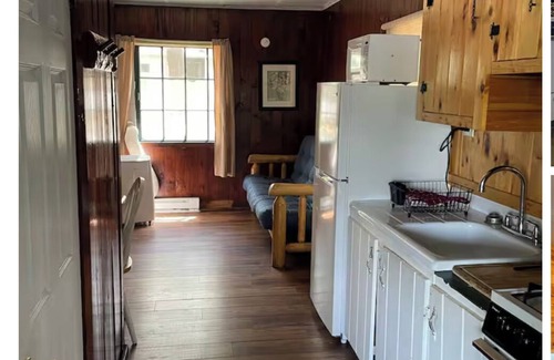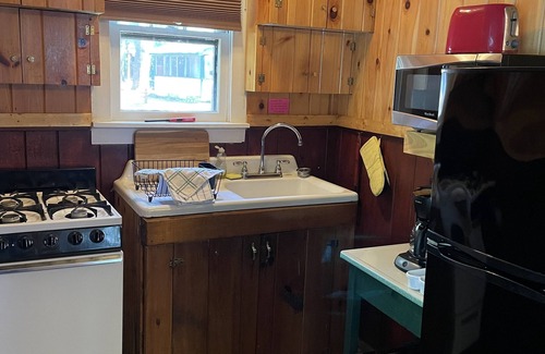 Your stay at the cottage includes a full array of amenities designed for comfort and convenience. Enjoy two queen beds or alternatives that include a queen and two twins, along with a futon that opens into a double bed. The fully equipped kitchen features all essential cookware, a refrigerator, stove, microwave, and coffee maker. Additional highlights include air conditioning, Wi-Fi, a screened-in porch, BBQ grill, picnic table, and a private campfire area perfect for evening gatherings. You can also take advantage of complimentary kayaks and rowboats, as well as a private beach for relaxation and recreation.