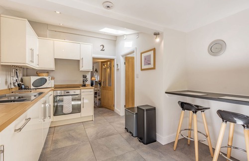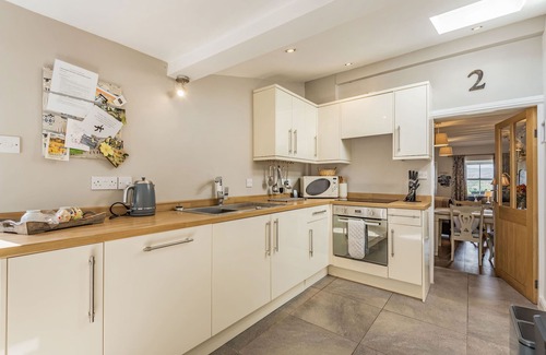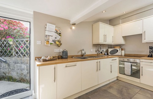 Amenities: Electric radiators with underfloor heating in en-suite bathroom and woodburning stove in sitting room. Electric oven and ceramic hob, microwave, fridge, dishwasher. Washing machine and tumble dryer in ground floor shower room. TV with Freeview, DVD, WiFi. Fuel, power and starter pack for woodburning stove inc. in rent. Bed linen and towels inc. in rent. Parking across road on grass verge. Small front patio and enclosed rear terraced garden with patio and furniture. Two well behaved dogs welcome. Sorry, no smoking. Shops and pub 5 mins walk.