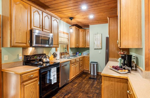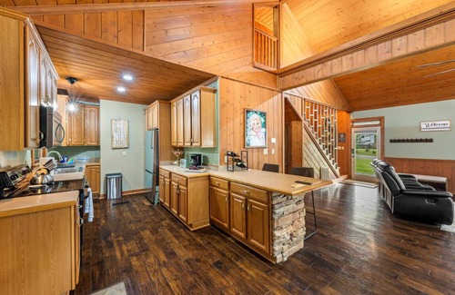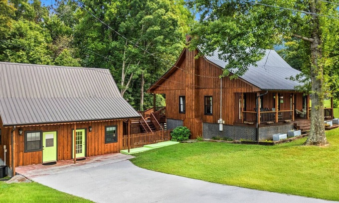 This inviting property features two cozy cabins with a connected deck and shared backyard, ideal for multiple families or groups of friends. Everyone can enjoy privacy while still sharing quality time together.