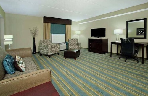 The tastefully designed 2 Queen Beds 1 Bedroom Suite includes plenty of well-appointed furnishings to create a relaxed atmosphere during your stay at Hampton Inn Hagerstown. This spacious suite includes separate living and sleeping areas, along with a comfortable sofabed for accommodating extra guests. In the morning, settle down in the well-lit work area with a cup of tea or coffee for a productive work session. Freshen up with the bathroom with a large vanity and luxurious bath amenities before heading out for a day of activity. In the evening, return to your suite to spend some downtime with a snack from the microwave and a cool drink from the refrigerator. At the Hampton Inn Hagerstown, treat yourself to a complimentary coffee or tea before making a stop at the tasty breakfast buffet for a leisurely start to the day. If you'd like to explore, take a six-minute drive to browse the shops and historical sites in downtown Hagerstown, or treat the family to some educational fun at the Discovery Station. When you're feeling hungry, head over to Potomac Avenue to sample local cuisine at 28 South or Schmankerl Stube. Back at the hotel, take a dip in the seasonal outdoor pool, or get in a quick workout in the fitness center. If you're traveling for work, take advantage of the on-site business center and flexible conference space to stay productive while traveling.