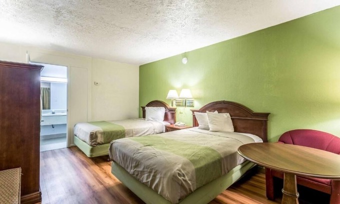 Welcome to your budget-friendly haven, perfect for business, pleasure, or just passing through. Our room offers comfort with a flat-screen TV with cable, free Wi-Fi, and in-room amenities like a microwave and mini-fridge. Start your day with our complimentary grab-and-go breakfast, enjoy meals at the on-site restaurant, and take advantage of the fitness center and laundry facility. We're pet-friendly too!