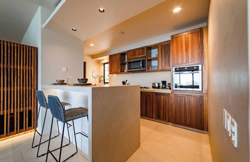 Designed by local architect and interior designer, Jorge Herrera, this condo offers attends to every detail and maximizes lifestyle comforts to offer the ultimate in vacation home living. The open concept dining, kitchen and living area allow for endless ocean views while enjoying time together. The kitchen is outfitted to provide all the necessary amenities to enjoy wonderful dining experiences in either the indoor or outdoor dining areas; all complemented by adjacent lounges.
