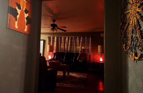 This is a spacious property offering nearly 2000sq of leaving area and 4 bedrooms 2 with king beds and 2 living areas and fully stocked kitchen as well as 2 restroom . The home is conveniently divided into a east section and a west section with living areas and a kitchen in between. The east section has two bedrooms with and share a full bath aside with laundry room and lounge area . The west part of the home has the king bed on one side and queen on the other, the full bath divides theses rooms this allows for great privacy if two parties are traveling together. With a fully stocked kitchen you are able to stay in and cooked a great meal from scratch. Great yard with a small firepit and a grill if you are watching the the game and would like to sit outside on a beautiful Texas evening and just relax. This home is in a goldilocks area where you can get to downtown for a night out in approx. 10 mins or head to Arlington for any number large venues Arlington has to offer such as six flags , cowboys stadium , or new rangers stadium just to name a few . Dallas is not too far off from Arlington if you are looking see Dallas on stay here in fort worth and experience the highlights of what north Texas and the DFW has to offer all in one trip. My home here is a great value if you are looking to see a lot and would like to maybe not spend a whole lot and have a large party or parties that would love to come see what north Texas is all about