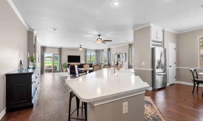 Relax and unwind at this cozy 4BR/2BA home in “Budaful” Buda, TX! Perfect for families or friends, it sleeps 8 comfortably and features a private pool with peaceful greenbelt views and stunning sunsets. Just blocks from downtown Buda and the amphitheater, and only 14 miles to downtown Austin, 16 miles to Circuit of the Americas, and 22 miles to San Marcos Premium Outlets. The perfect spot for a weekend getaway or extended stay near everything Central Texas has to offer.