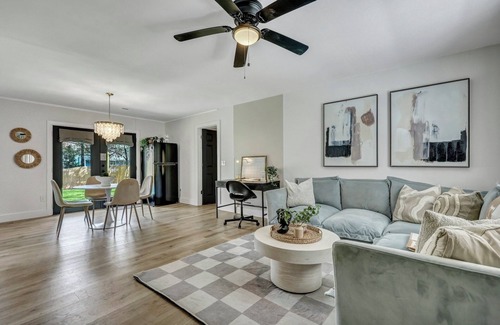 Welcome to our newly renovated Charleston home! Nestled in a quiet working-class neighborhood, it’s 15 minutes from downtown, 6 minutes from the airport, and near the North Charleston Coliseum and PAC. Our beautiful home features 2 king beds and 1 queen. Enjoy stylish decor, a fully equipped kitchen, a fenced yard, Fire TV and speedy internet. Whether you’re here to relax or explore Charleston, our home is a cozy retreat with all the amenities for an unforgettable stay!