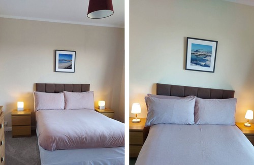 The living areas of the detached bungalow consist of a kitchen with an electric oven and hob, fridge, washing machine, and a living/dining room with an open fire, WiFi, TV and selection of books. The bedrooms consist of two doubles and a bunk, along with a shower room. Outside, there is a rear garden with patio, lawn, and ample off-road parking. Within 7.6 miles, you will find a shop, within 6.3, a pub. Please note that this is a pet-free and a smoke-free cottage. Fuel, power, a starter pack for the fire, bed linen and towels are all included in the cost. Choose 2 Knockquien for a secluded stay with your loved ones. Note: Check-in is from 4pm, check-out by 10am.
