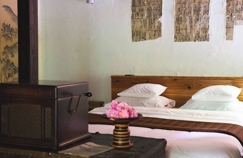 The main building of an old folk house from about 400 years ago has been renovated and the interior is carefully decorated with antique items
