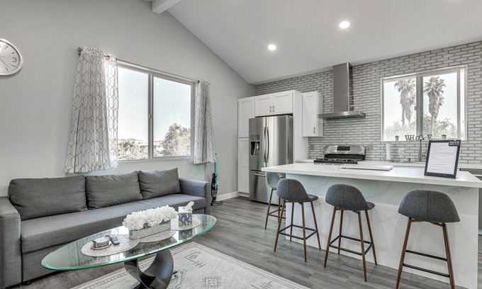 Spend your next stop in Southern California staying in style at this Escondido vacation rental! Whether you’re traveling for work or looking for a spot to relax, this 2-bedroom, 2-bath apartment’s sleek modern interior and perfect central location make it an ideal home base. See a show at the California Center for the Arts, explore nature trails at the Elfin Forest Reserve, or spend a day touring the San Diego Zoo!