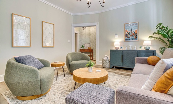Nestled in the heart of Covington, with easy access to restaurants, shops, and top attractions, this 2-bedroom, 1.5-bath vacation rental offers the perfect base for your next Cincinnati escape! Sip your morning coffee on one of the patios, then stroll through Devou Park or explore Fountain Square. As evening approaches, gather in the kitchen for snacks and queue up your favorite streaming picks!