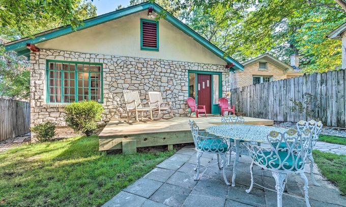 Revel in the natural beauty of Hot Springs at this charming 2-bed, 1-bath house, ideally located in a quiet Uptown neighborhood! The updated vacation rental offers all the makings for a relaxing getaway, complete with a furnished courtyard, a fully equipped kitchen, and a private hot tub. Venture to Hot Springs National Park and explore the hiking trails and steamy natural springs, hit nearby Northwoods Bike Trail, or take a stroll through downtown for shopping and dining, all just minutes away!