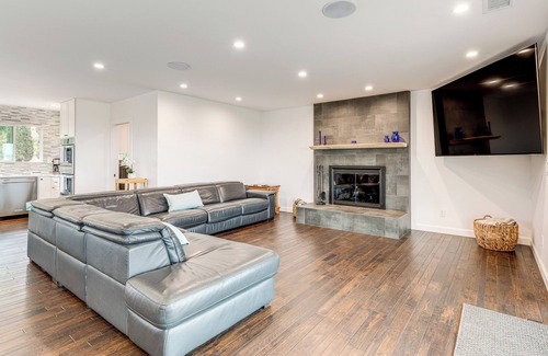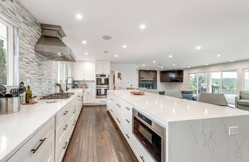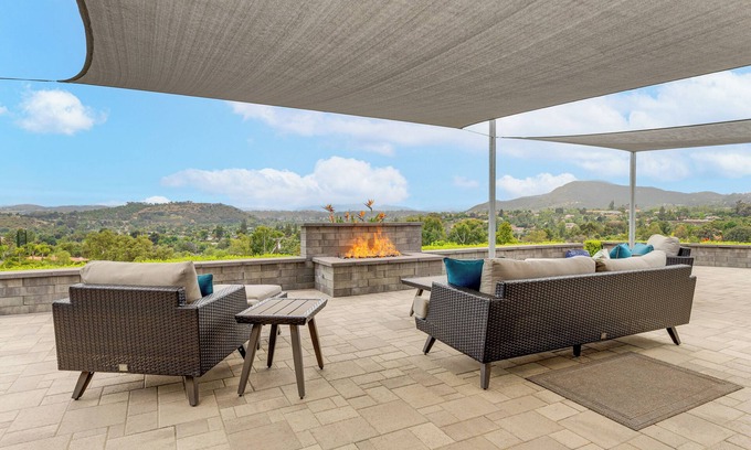 Nestled along a serene hillside with over 2 private acres and stunning views, this 3-bed, 2-bath vacation rental home in Poway invites you to soak in nature's splendor. Start your day with a hearty breakfast in the kitchen before hiking to Potato Chip Rock or venturing to downtown San Diego. As evening falls, unwind with a glass of wine by a crackling fire — inside or out. Book now!