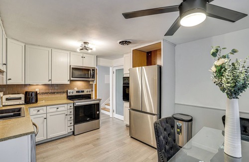 Whether you’re in town to visit loved ones or simply seeking a peaceful retreat, this Waterbury vacation rental makes an ideal base! The 3-bedroom, 1-bath home has a welcoming interior, a full kitchen, and a furnished patio with multiple dining areas and a gas grill. Enjoy morning strolls along the Waterbury Greenway, then tour the Mattatuck Museum or indulge in some retail therapy at Brass Mill Center!