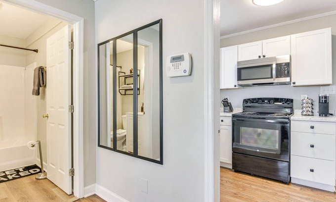 Located in Charlotte, this welcoming cottage lets you experience it all. With the property's convenient onsite parking, you'll be ready to make the quick 4-minute drive to Bank of America Stadium or the 4-minute drive to Spectrum Center.Check out other neighborhoods and see more of Charlotte by hopping on a metro at either French Street Tram Stop, a short 8-minute walk away, or Johnson C. Smith University Tram Stop, 8 minutes away.