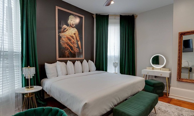 Experience Lexington at its best in our newly renovated home, tastefully themed in the Flapper era. The space includes a King size suite and a full-size bedroom, providing comfortable accommodations for your stay.