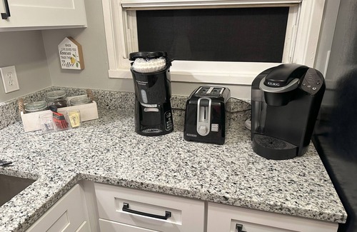 • Kitchen Essentials: Pots, Pans, Plates, Dinnerware, Glasses, etc blender, coffee (Keurig) as well as traditional pot (some coffee to start with)