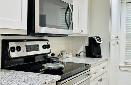 KITCHEN: Refrigerator, stove/oven, dishwasher, dishware/flatware, cooking basics, spices, drip coffee maker, blender, microwave, toaster, water filter, ice maker