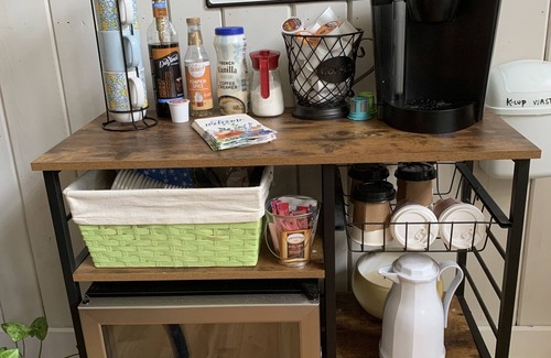•The kitchen is fully stocked with dishes, pans, glassware, wine glasses, wine opener, cooking utensils, microwave, refrigerator, stove/oven, dishwasher, toaster, & a Keurig coffee maker. Coffee pods provided.