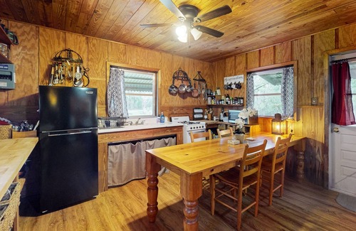 - Rustic riverfront cabin with views, firepit, grill, canoe, kitchen, & W/D