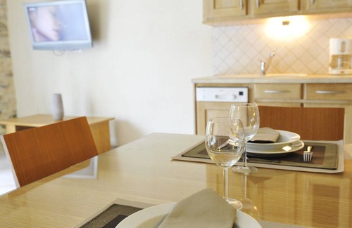 All apartments are air-conditioned and equipped with high-speed internet and a TV. They have a fully equipped kitchenette with dishwasher and a private bathroom.