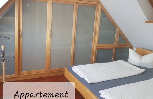 Cozy loft for up to 5 persons above the roofs of Hilpoltstein. 1 bedroom with double bed in one corner of the living room a comfortable sofa bed. In addition, the possibility to build an extra bed. Lots of storage space for your luggage in the beautiful fitted wardrobes.