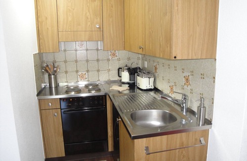 The apartment is on the first floor but accessible by stairs or an elevator. The parking garage is accessible by the same elevator. It is a non smoking and pet free apartment. The TV offers Swiss, German, and some foreign language programs. There is also a WiFi and a Nintendo Wii for use. The kitchenette is fully equipped for four persons incl. a fondue set, coffee maker, toaster and an electric kettle. The apartment comes with fresh towels, bed sheets bed linen.