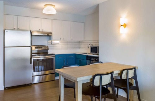 - Fully-equipped kitchen with Full-sized refrigerator, Stovetop, Microwave, and Coffee maker;