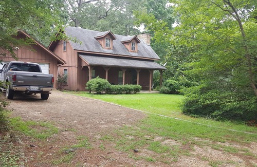 Home has two queen beds upstairs, one full down stairs with a couch fold out. There is a detached garage. There is a convenient store with gas and a boat launch right across the hwy at Harbour Lights. It is about a 20 minutes drive to Cypress Bend resort and Fin and Feather. There is no smoking allowed inside the home. Pets may be allowed on a case by case bases. I do offer 7day reservation discounts of 7%-8% per night as well as 28day reservation discounts of 28%-30% per night.