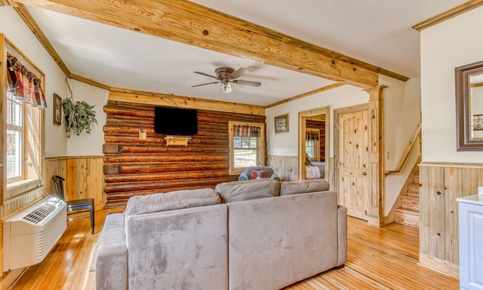 Originally built in the 1930s as a small tavern and slowly expanded, this two-story cabin plus loft has everything you need to experience a truly memorable stay with your family and friends! The cabin rooms were once a dance hall - the floors of the cabin rooms are the original floors!