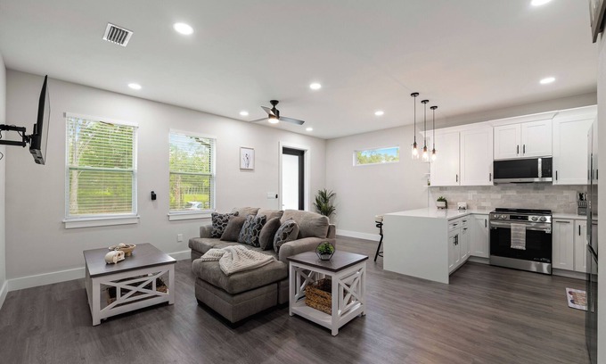 Welcome to your home away from home in historic Brooksville! This 2BR, 2BA retreat features 3 comfy beds, a full kitchen, spacious living area, and natural light throughout. Relax in a peaceful yard in a quiet neighborhood, just minutes from downtown shops, restaurants, golf, trails, a nursing home, and the old train museum. Comfort, charm, and convenience await in this cozy Brooksville gem.
