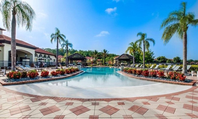 Bella Vida Resort is a gated community with guards. Gated Entrance Lakes Wetlands Walking Trails Formal Garden Areas Close to Shopping Walt Disney World Resort is 12 minutes away. 6700-sq.-ft. Clubhouse Spacious Lounge Movie Theatre Cyber Cafe Fitness Center Basketball Court Sand Volleyball Court Resort Pool and Spa Tot Lot The home features: A full kitchen Dining area Separate sitting area with a flat-screen cable TV. Private pool A Game room Washer and dryer. Iron and ironing board Walmart 24/7 Superstore is 2 minutes away by car or walk in 10. It's that close. Plenty of shops and restaurants nearby. All six bedrooms have Televisions. The rental also includes free Wifi.