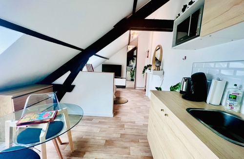 The studio is ideally located in Amiens, close to the city center, the universities and the CHU, in a very pleasant and calm environment. You will be close to all essential stores but also to boutiques, restaurants, bars, market...