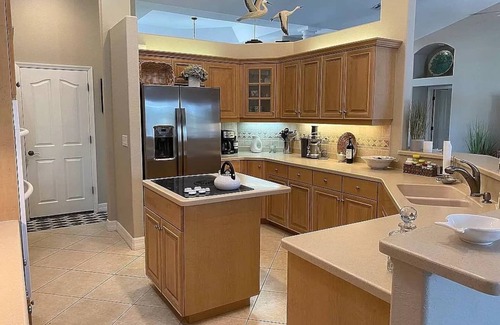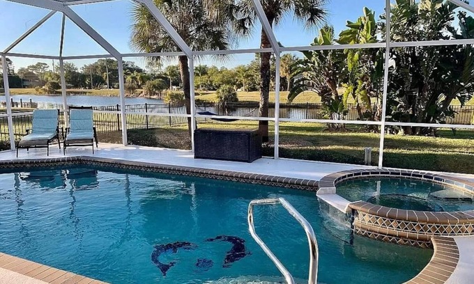 20% off 6-month advanced bookings! Come and experience fun in the sun at our Rotonda West villa. Enjoy the outdoors indoors by opening up the great room to the patio and lanai with heated pool & spa, nestled on the Rotonda River. Enjoy the views of the sunset and wildlife in the backyard. Golf at your choice of five courses in the community. Fish off the canal bank or lounge in the sun at the Boca Grande beach on the Gulf of Mexico. Boca Grande and Englewood Beaches within 25 minutes!!! Located 90 Minutes from Tampa and Fort Myers, 150 Minutes from Disney, 180 Minutes from Miami.