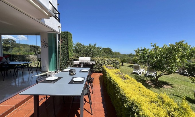 -Car recommended-Located on the hills of La Mairena and close to the most beautiful beaches of the Costa del Sol, this comfortable two-bedroom apartment has two bathrooms, a magnificent private garden of 250 m², a sunny outdoor terrace with BBQ, a glazed winter terrace that can be fully opened, a shaded private patio and a fully equipped kitchen.Luxurious corner ground floor, without vis-à-vis, with panoramic views of the sea as well as the hills overlooking Marbella, and the mountains of the Sierra de Las Nieves (UNESCO Biosphere Reserve).Please note that for your comfort we provide a BASIC WELCOME PACK including mini-doses of shampoo, shower gel, soap and 1 roll of toilet paper per bathroom, as well as a few capsules for coffee and the dishwasher, which will NOT GET RENEWED during your stay !The two swimming pools, one of which is for children, also offer panoramic views of the coast and the mountains. Access to the sports facilities of the El Soto club, located less than 2 minutes away, is free. It has a golf course (9 holes), a fitness room, a sauna, a jacuzzi, a pétanque court, tennis and paddle courts (rackets available in the apartment). After sport, the club house, located in the heart of the golf course, is also accessible for a drink or a good meal.We cannot be held responsible in the event of closure of swimming pools by decision of the community or regional decision due to water restrictions put in place during periods of drought.