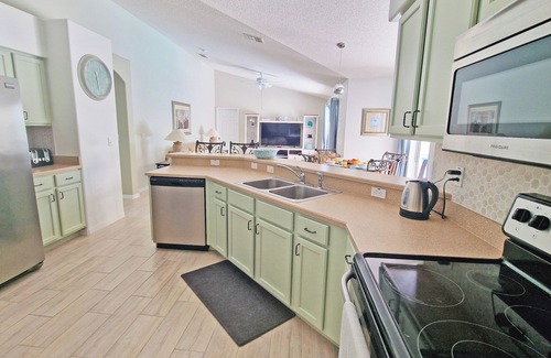 After a busy day at the theme parks, our spacious, well equipped villa is the perfect place for you to relax. With two master suites, the villa can easily be occupied by two families. Not overlooked by neighbours, the oversized south-facing pool and spa are a great place to enjoy family fun. The main lounge leads onto the pool deck, (doors are alarmed for child safety) and is equipped with a 65" flatscreen LCD cable TV with access to 270 channels. The family room gives children young and old the space to play board games, watch cable TV on the 50" flatscreen TV, watch a DVD, or read a book. The Games Room has an 8ft slate-bed pool table, large air hockey table and a Basketball game. Just 3 minutes from the US192 with its restaurants, bars and attractions and 10 minutes from the I4, this property is very well appointed. A Walmart superstore and Publix supermarket are less than 5 minutes away, as is the beautiful Lake Louisa State Park with its 6 lakes to fish, kayak/canoe on and trails for hiking and horse-riding.