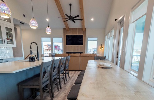 Nestled just **200 steps from the Gulf of Mexico**, *SoundWaves* offers the perfect blend of **luxury, fun, and relaxation**. Designed for **large families, friends, or groups up to 18 guests**, this six-bedroom, three-King suite retreat allows you to **escape the city while staying close to all the best Crystal Beach and Bolivar Peninsula attractions**. From sunrise coffees on the deck to evening karaoke singalongs, every moment here becomes a memory to cherish.