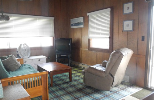 Ceiling fans, TV's (bedrooms/LR) and a large fully applianced kitchen ( seats 6-8). Parking for two cars! Kitchen, bath and bedroom on first floor. Second floor has carpeted second bedroom , 1/2 bath and large living room with large deck with great Ocean view!!! Walk to restaurants, downtown, movies etc. Fresh lobsters sold on piers can be home- cooked for a down east lobster bake! Sheets and towels are not provided.