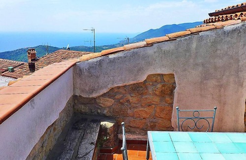 5-room house 80 m2 on 3 levels. Fully renovated in 2012, rustic and tasteful furnishings: open living/dining room with open-hearth fireplace, dining table, kitchen corner and air conditioning. Kitchenette (2 hot plates, oven). Shower/bidet/WC. Upper floor: small living/dining room with air conditioning. Exit to the balcony. 1 small room with 1 x 2 bunk beds. Exit to the balcony. 2nd upper floor: open living/sleeping room with sloping ceilings. 1 double bedroom with sloping ceilings. Shower/bidet/WC. 2 small balconies, terrace 10 m2. Sitting area. Beautiful panoramic view of the sea, the resort and the town. Facilities: iron.