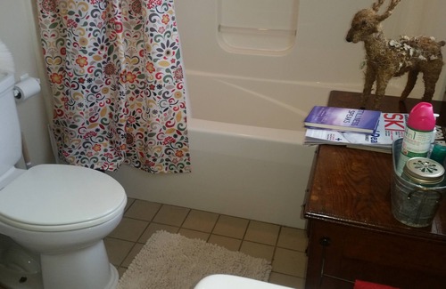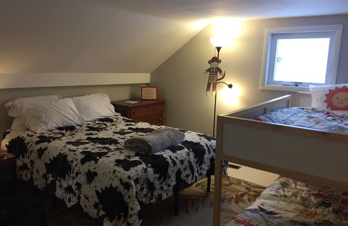 Each of the two bedrooms have a new queen size bed . The upstairs bath is quite large and updated, as is the first floor bath.
