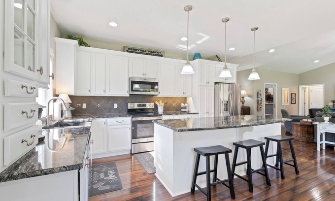 2000 SQ FT Open Concept One Level - Gorgeous - 1 Mile to WATERPARK- FREE PASSES! has 4 Bedrooms , 2 Bathrooms, and max occupancy of 8 people. The minimum rental for this property is 1 nights, but this can change depending on the season you plan on staying. Previous guests have given good rated it, and VRBO labeled it a top-rated House because of the excellent services rendered by the owner or manager of this House, and has consistently provided great experiences for their guests. Most families or guests that use it recommend it to their friends and some of them are repeat guests. House has a friendly neighborhood, and the Mission Hills has interesting places to visit. If you want to learn more about the House in Mission Hills, such as places to visit and things to do nearby, you can check below to learn more.
