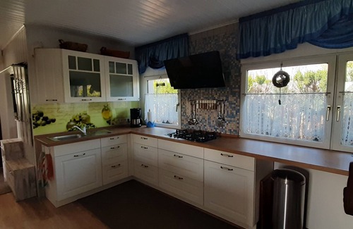 This holiday accommodation is a Equipped Bungalow, located in a modern fully equipped kitchen and a bathroom with shower. Directly connected is the bedroom with 2 beds and a living room with a sofa bed for 2 guests. NEW for our guests a conservatory with air conditioning so that it can be used throughout the year. There are 3 modern bikes ready and a canoe which is all included in the price.