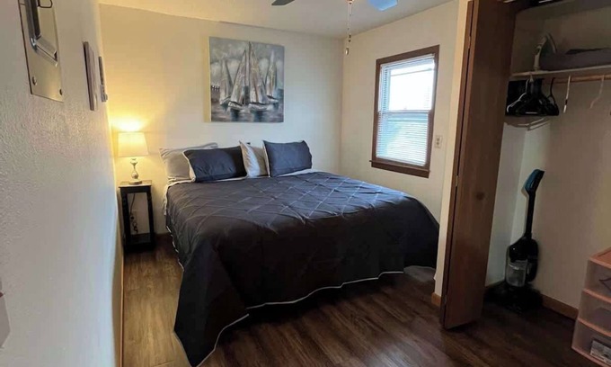 Fully furnished one bedroom with private entrance. All areas in the unit are accessible to the tenant including closets and full bathroom. Fully stocked kitchen including: silverware, dishware, drip coffee maker (coffee not provided - guests are responsible for bringing their own coffee), toaster, basic pots and pans, basic cooking utensils, and glassware. WIFI throughout the whole unit with Smart TVS. Guests are welcome to use the laundry facilities on the lower, backside of the building. Laundry is coin operated and open 24-7 to guests. The property is located near local parks and is connected to everything in the area via sidewalks.