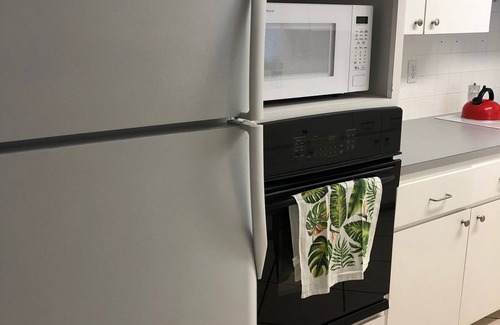 Kitchen is stocked with all customary equipment needed and a few extras like: spices, Keurig coffeemaker and pods, regular coffee pot, paper towel, soaps, many pots, pans and dishes. Including to go, Tupperware, dishes for the kids and much more. The kitchen is large and open to living and dining room making this area very spacious.