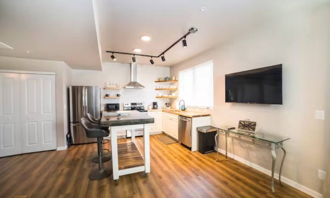 As 4th generation natives of Flagstaff, we are proud to offer this space. Newer construction with a modern but comfortable feel. We have a full kitchen which includes: stove/oven, refrigerator (with ice maker), microwave, dishwasher, pots & pans, dishes, silverware, blender & toaster. We even provide coffee & tea. Washer & dryer in unit. One Bedroom with a king size bed and closet space. One full bathroom. Sofa bed in the living room area for extra guests. Just a note, we do not allow pets.