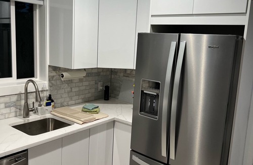 • Full size kitchen with new appliances (gas stove, fridge with water/ice, microwave, dishwasher)