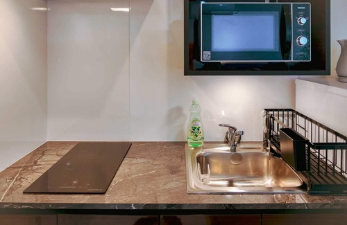 - Kitchen: induction stove and the sink, microwave oven, refrigerator, electric kettle, pots and pans. Seasonings are not provided due to food safety concerns.