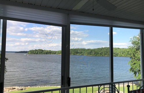 You will have access to all of the amenities that Big Bear Resort has to offer including access to a swimming pool, a sandy beach right outside the condo, gazebos, fire pit right on the water, and rental opportunities at the marina (pontoon, speedboat, fishing boat, paddleboat, knee board, tubes, skis, etc.) The view from the patio of this condo is one of the best on the lake, you have a perfectly unobstructed view of the main lake from a convenient screened in porch. The condo is on the first floor, so you have easy access and will not have to worry with stairs (minor 2-3 steps to front entrance and garage entrance). If you'd like a boat slip, the marina has low cost nightly rental slips for your use as low as $15 / day. I've also left a couple yard games for your use, Bocce Ball, Corn Hole, and the resort has a volleyball net and basketball court. There is a gas grill in the garage for your use as well as a small charcoal grill. A keurig coffee pot is also available in the kitchen.