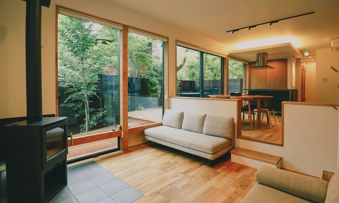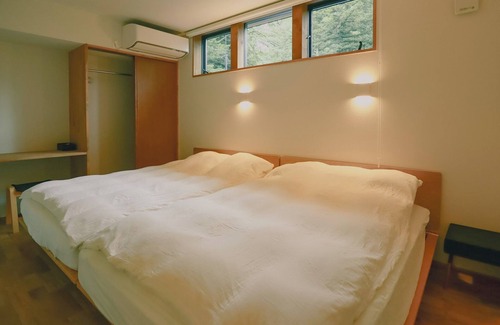 Karuizawa Forest Seasons villa retreats offer private gardens highend amenities 24hour Englishspeaking staff and a unique experience that respects your privacy while providing every comfort with the natural beauty of Karuizawas forests / Approx 97private yard 30 wood deck Nordic antique furniture 3 bedrooms 7 double beds Only 1km to Harunire Hoshino hot spring and church Free parking EV charger available