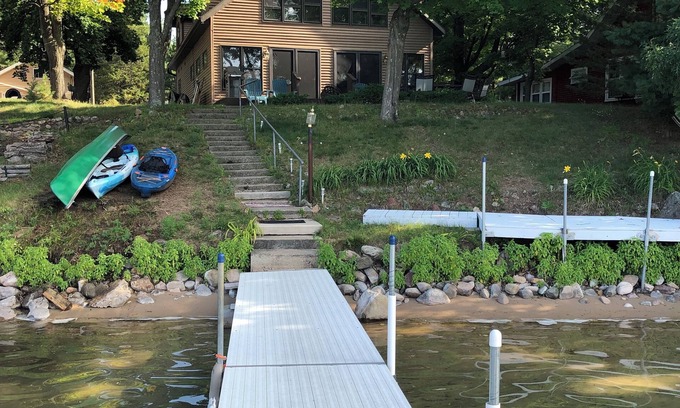 House was built in 2006. Has all the furnishings and amenities of home. Natural gas outdoor grill, patio furniture, fire pit, swim raft, 1 Canoe, 2 kayaks and 2 paddle boards. All lake sports require a life jacket. Our property 1 hour from Wisconsin Dells